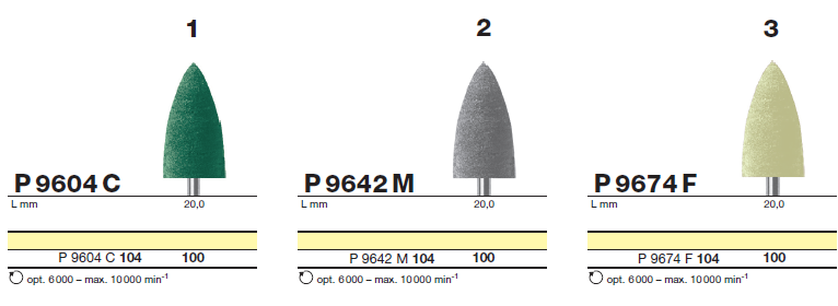 Боры для трехступенчатой полировки зубных протезов и акрила